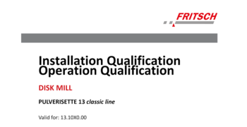 IQ/OQ documentation (questionnaire format - implementation by customer) for the independent utilization for the support of instrument qualification in the quality management system for the Disk Mill PULVERISETTE 13 classic line.